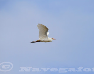 La Garcilla bueyera es facil de distinguir por su pico de color naranja y su cresta naranja.